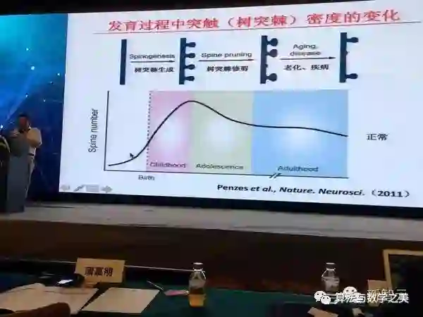在发育过程中我们看到树突棘大量上升,刚出生的时候是不断的上升,然后开始慢慢下降,到青年期就开始下降,为什么下降了,下降就说你学习的过程中就是造成网络的修饰,开始的时候小孩子在地上爬都站不起来,所有的运动系统很复杂的网络造成的,通过什么样的强化,哪些东西是正确的网络,他就慢慢的学会站起来会走路了,这个网络就被巩固下来,这个是修饰过程,所以网络的修饰在发育期是很重要,这个发育期网络修饰有问题就产生各种问题,自闭症是网络修饰不够,精神分裂症是网络修饰太大,这是现在的假说。