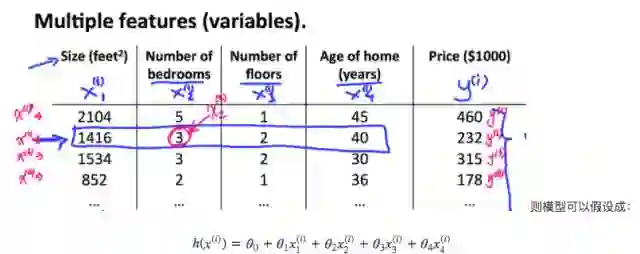 紧接上一篇的例子 – 房价预测。现在我们有更多的特征来预测房价了,“房间的数量”、“楼层”、“房龄”……