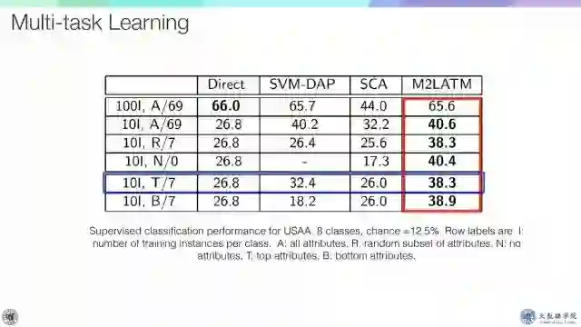 我们在USAA数据集和AwA数据集上进行了实验,结果如上表所示,把属性当作video attention的话,可以做多任务学习。