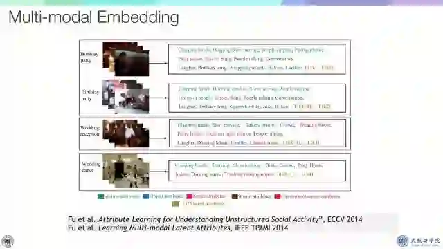 视频理解,通过深度学习来embedding 目标或者场景,做action,activity,one-shot learning,zero-shot learning。上图为video emotion understanding的工作。
