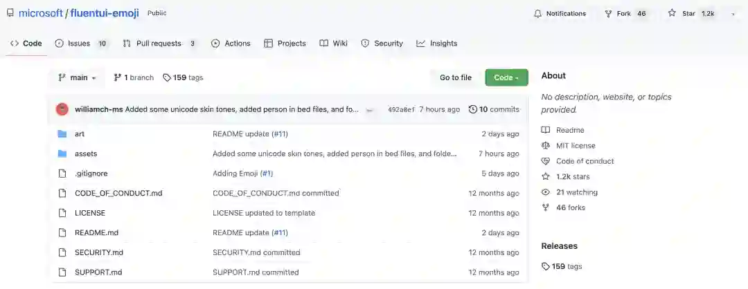 项目地址:https://github.com/microsoft/fluentui-emoji