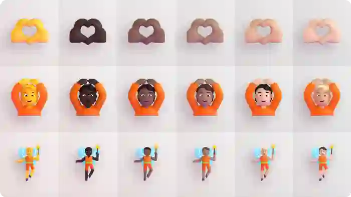 在表情的设计上,微软可是下了很大功夫,根据不同的需求设计出多样性表情,比如不同的人群、宗教和国家。