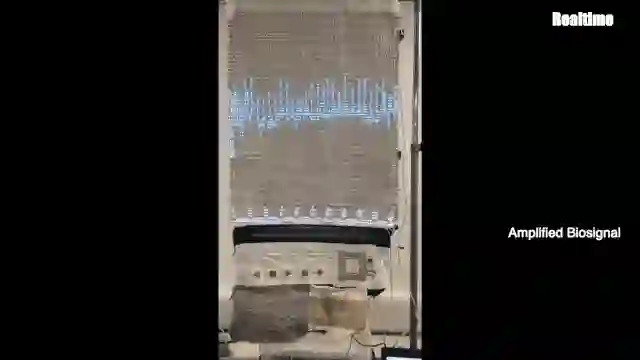 实验中,工作人员使用该系统读取自身心跳,显示屏则实时显示心电图。