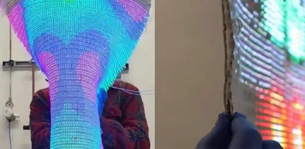 他们研发出了一种基于纺织物的智能显示屏,将智能传感器、LED 显示器、电能收集与存储直接集成到纺织物中,不仅能实时显示图表信息、交互触摸,还能够任意弯曲折卷,“一块布就是一个显示屏”。