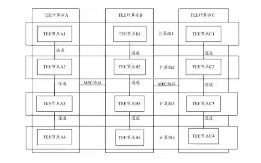 为解决这一难题,蚂蚁集团于2021年起推动发展新一代隐私计算技术可信密态计算(TECC),创新性地将密码技术(MPC、FL)和全栈可信计算技术(TEE、TPM)融合在一起,突破了使用单一技术的局限,获得了更高的综合能力。