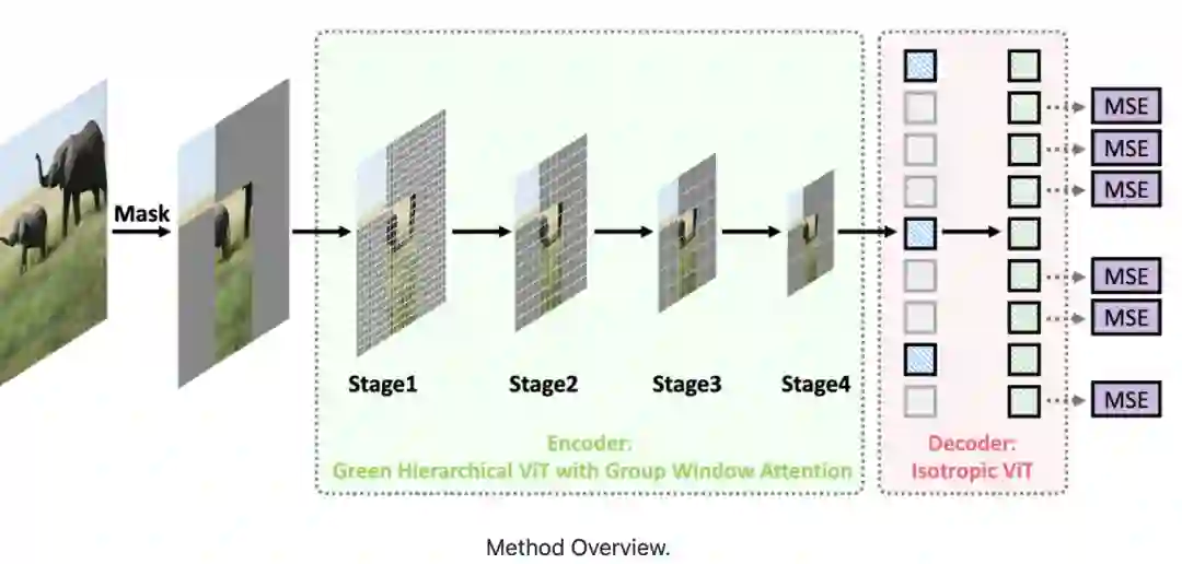 不光将Swin Transformer整合到了MAE框架上,既有与SimMIM相当的任务表现,还保证了计算效率和性能——