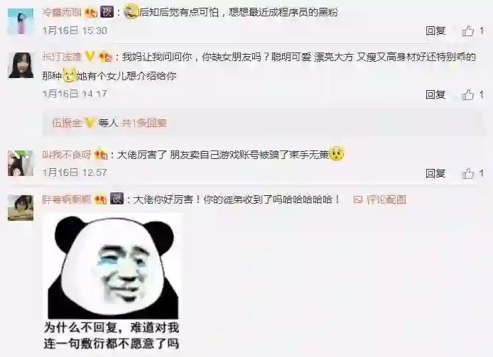看到没?搞掂骗子的程序员小哥吸粉无数啊!单单找他拜师学艺的妹子就排成几个加强连了,当然,如此高深的IT技术可不是随随便便就可以传授的,遇到类似要求拜师学艺的情况,建议提高收徒标准: