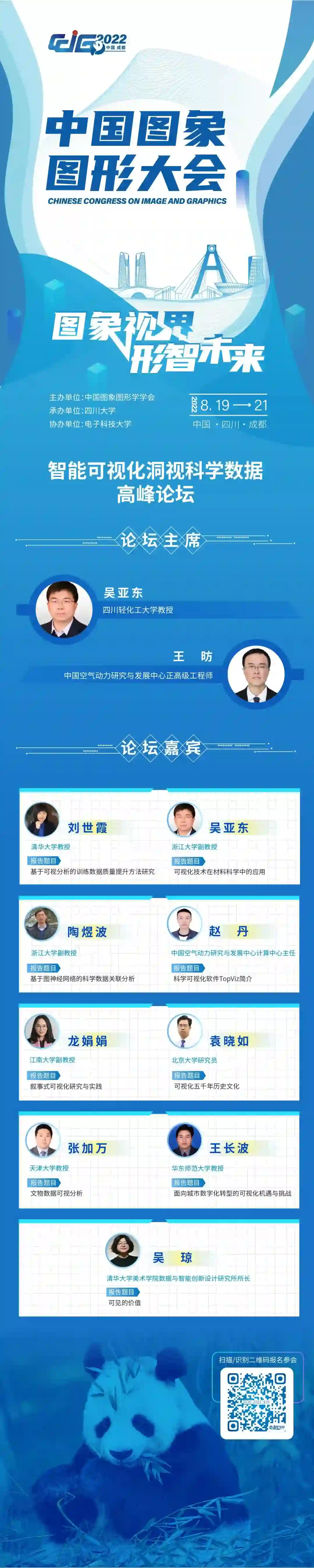 在CCIG 2022期间,会议将举办智能可视化洞视科学数据高峰论坛,论坛信息如下: