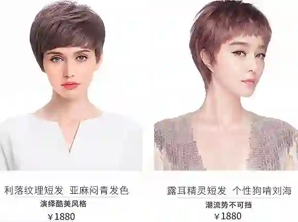 狗啃刘海和亚麻闷青等时尚款假发。图片来源:瑞贝卡京东店铺截图