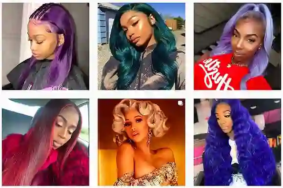 黑人女孩有自己的倔强。比起真发,她们喜欢较便宜的化纤制假发;她们对外观和颜色很在意,也能接受彩色假发和夸张发型。Instagram“假发”标签下的照片中,黑人女孩展示自己的假发,大多都爱突出个性的假发颜色或是蓬松的发尾弧度,配合着拗得刚好的性感造型。