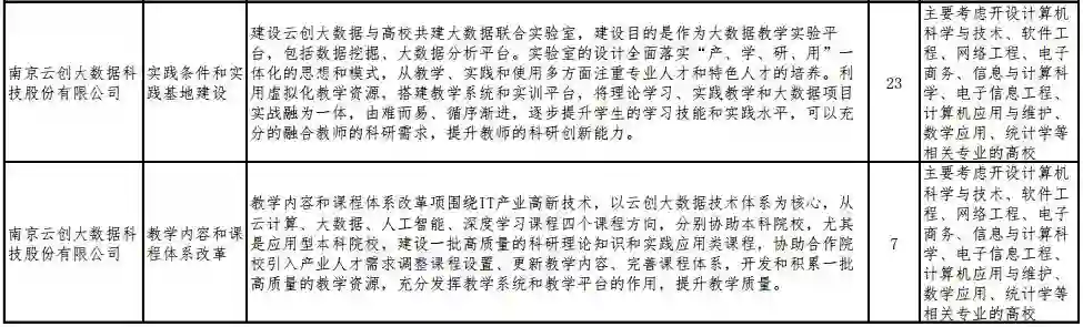 2018年12月12日,通过教高司函〔2018〕59号,教育部高等教育司公布了有关企业支持的“产学合作协同育人项目申报指南”(2018年第二批),云创大数据共有30个产学合作项目获批,包括“实践条件和实践基地建设”与“教学内容和课程体系改革”两个类别,专业方向涵盖物联网、大数据、云计算、移动互联、网络工程等方面。