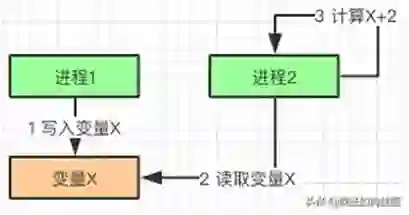 这里“进程 1”和“进程 2” 的操作就存在因果关系。“进程 2” 的计算依赖于进程 1 写入的 X,如果没有 X 的值,“进程 2”无法计算。