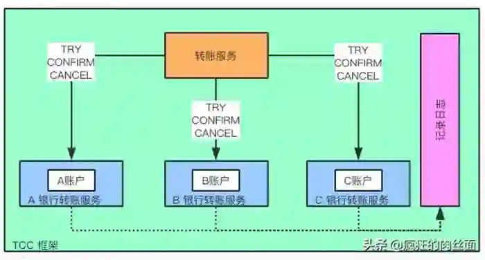 TCC 通过记录事务处理日志来保证可靠性。一旦 Try,Confirm,Cancel 操作的时候服务挂掉或者出现异常,TCC 会提供重试机制。另外如果服务存在异步的情况可以采用消息队列的方式通信保持事务一致。