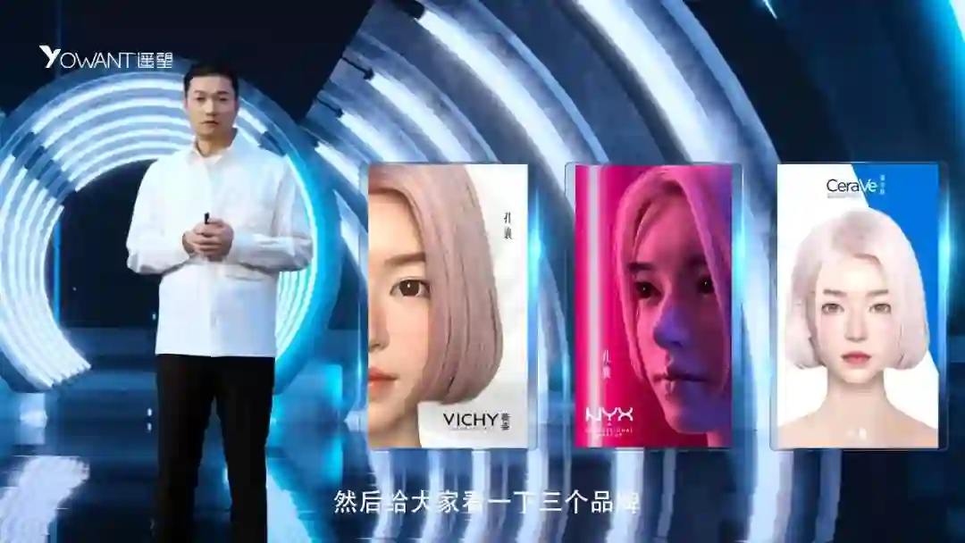 大会介绍,遥望网络首位虚拟数字人「孔襄」将应用到直播场景、影视剧和综艺之中。目前,「孔襄」已经接到了三个品牌的合作代言,成为适乐肤、薇姿、NYX 等三个美妆品牌首个虚拟人品牌挚友。