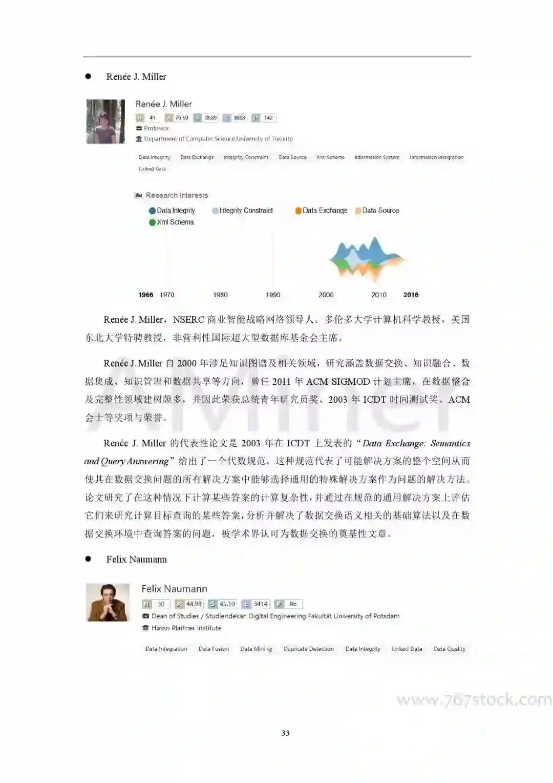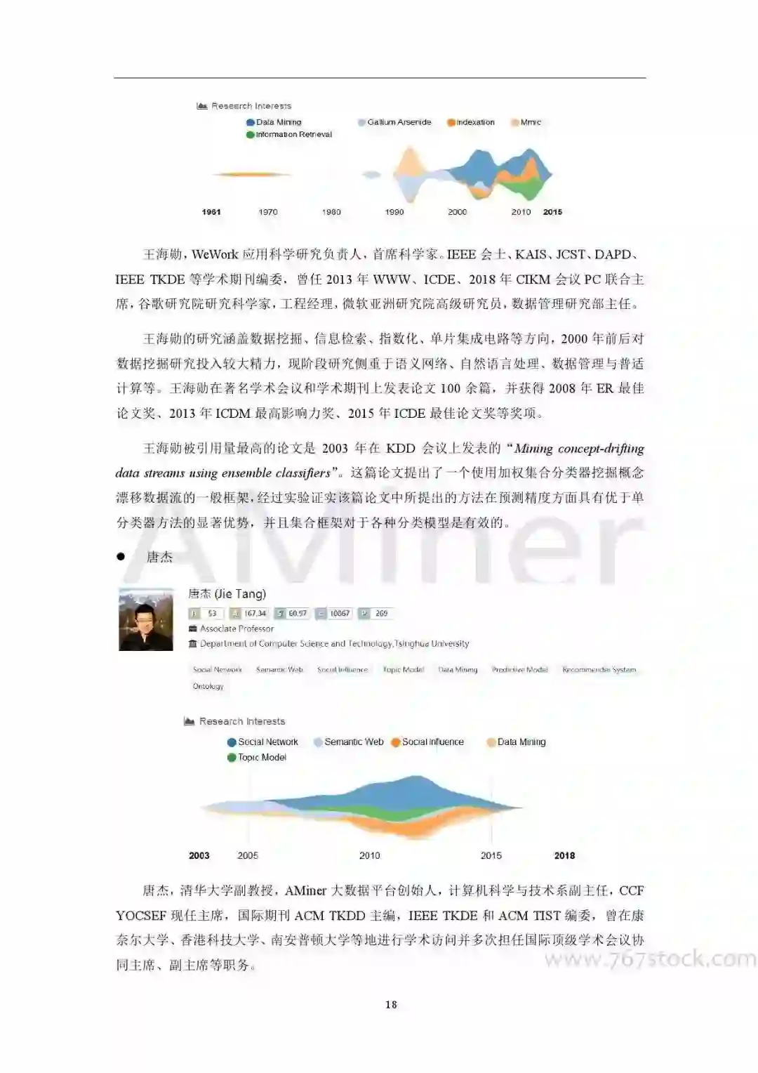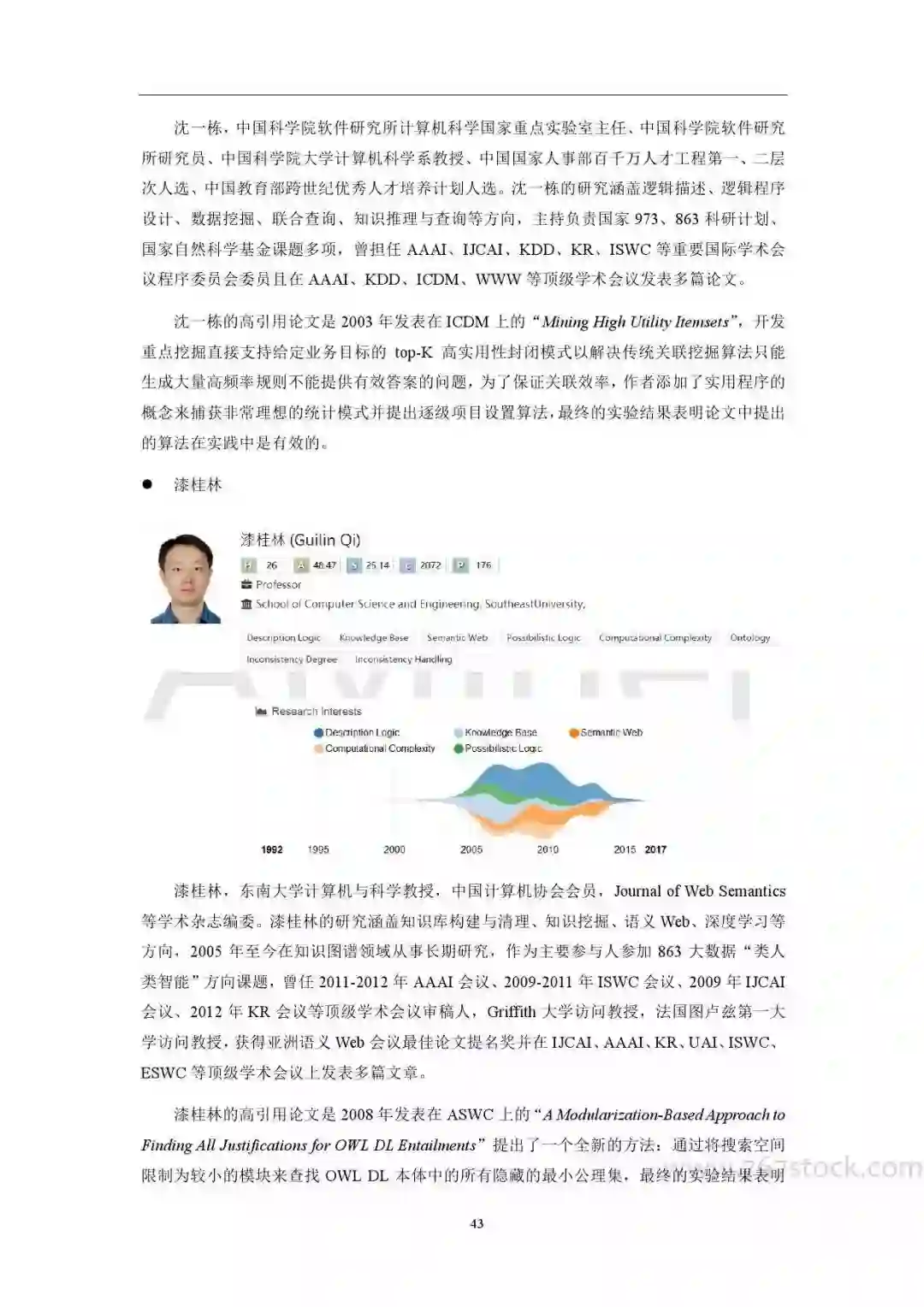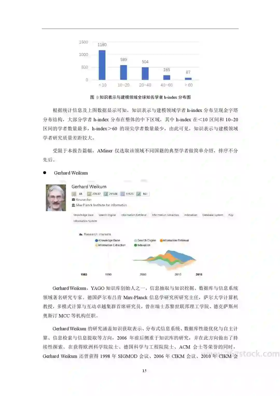 知识图谱领域专家介绍。依据AMiner数据平台信息,对知识图谱领域的5个细分领域进行梳理,重点介绍每一细分领域研宄学者的研宄方向与代表性文章,旨在为学术界、产业界提供知识图谱技术及学者的分析依据,同时面向政府机关、高校、企业等对知识图谱技术感兴趣的机构介绍该领域基本概念、研宄与应用方向。包括顶尖学者的全球分布、迁徙概况、学者机构分布、h-index分析,并依据AMiner评价体系,在知识图谱发展过程中近十年的高引学者进行详细介绍。