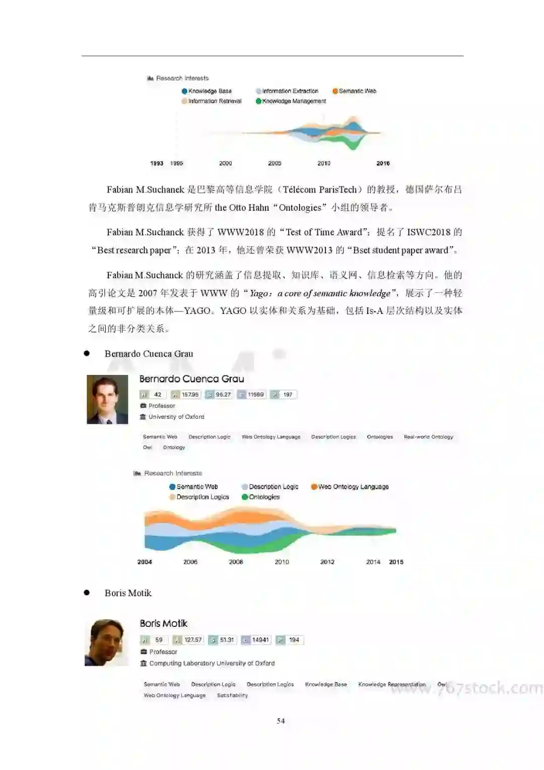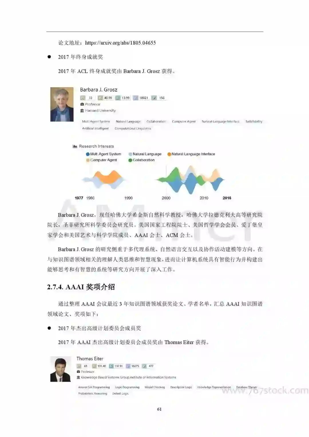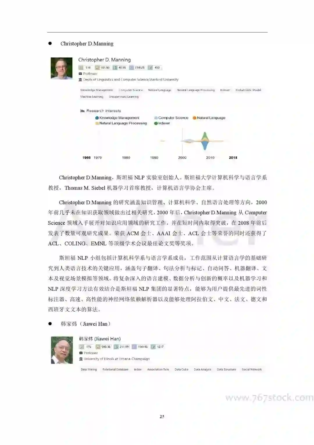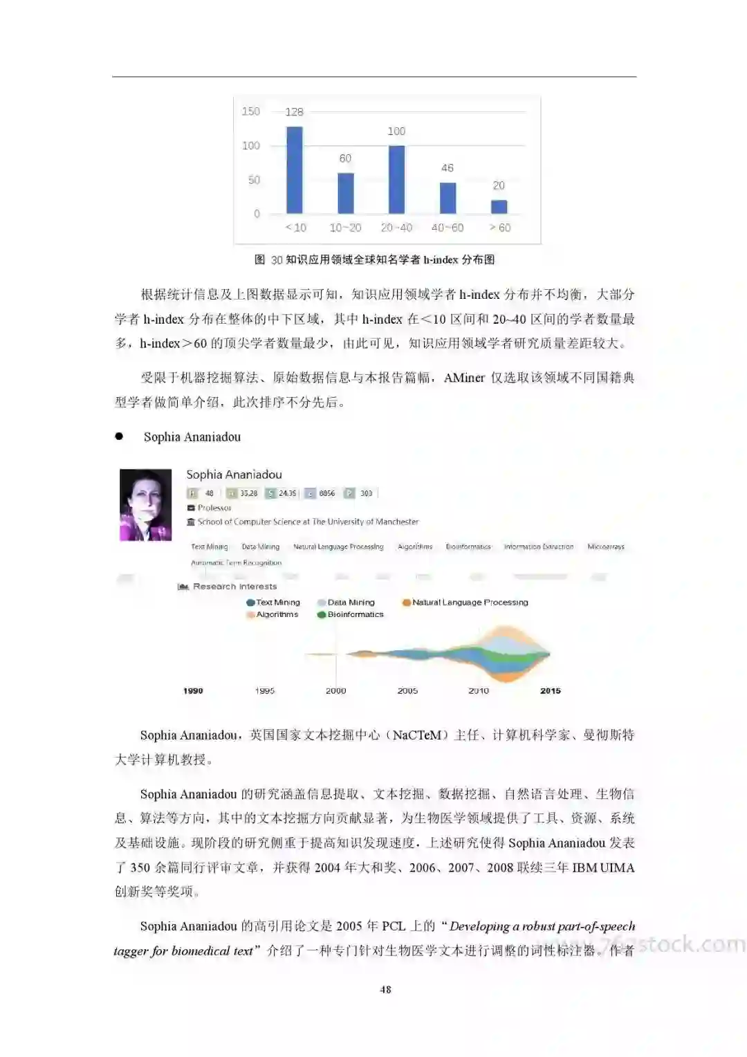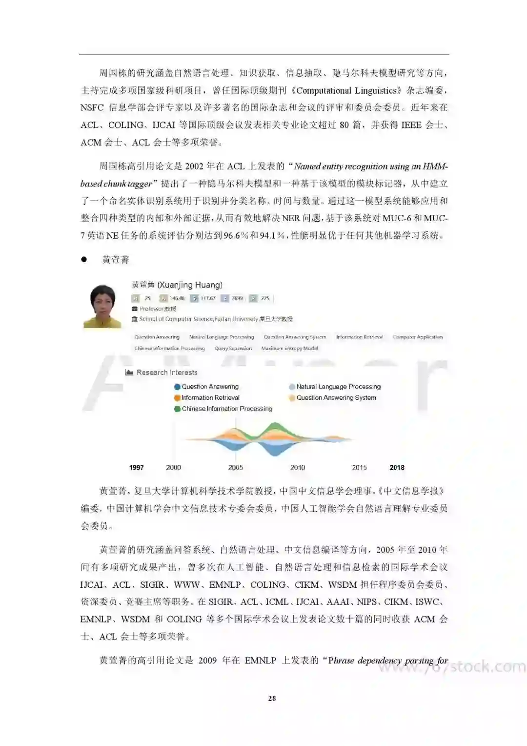 知识图谱领域专家介绍。依据AMiner数据平台信息,对知识图谱领域的5个细分领域进行梳理,重点介绍每一细分领域研宄学者的研宄方向与代表性文章,旨在为学术界、产业界提供知识图谱技术及学者的分析依据,同时面向政府机关、高校、企业等对知识图谱技术感兴趣的机构介绍该领域基本概念、研宄与应用方向。包括顶尖学者的全球分布、迁徙概况、学者机构分布、h-index分析,并依据AMiner评价体系,在知识图谱发展过程中近十年的高引学者进行详细介绍。