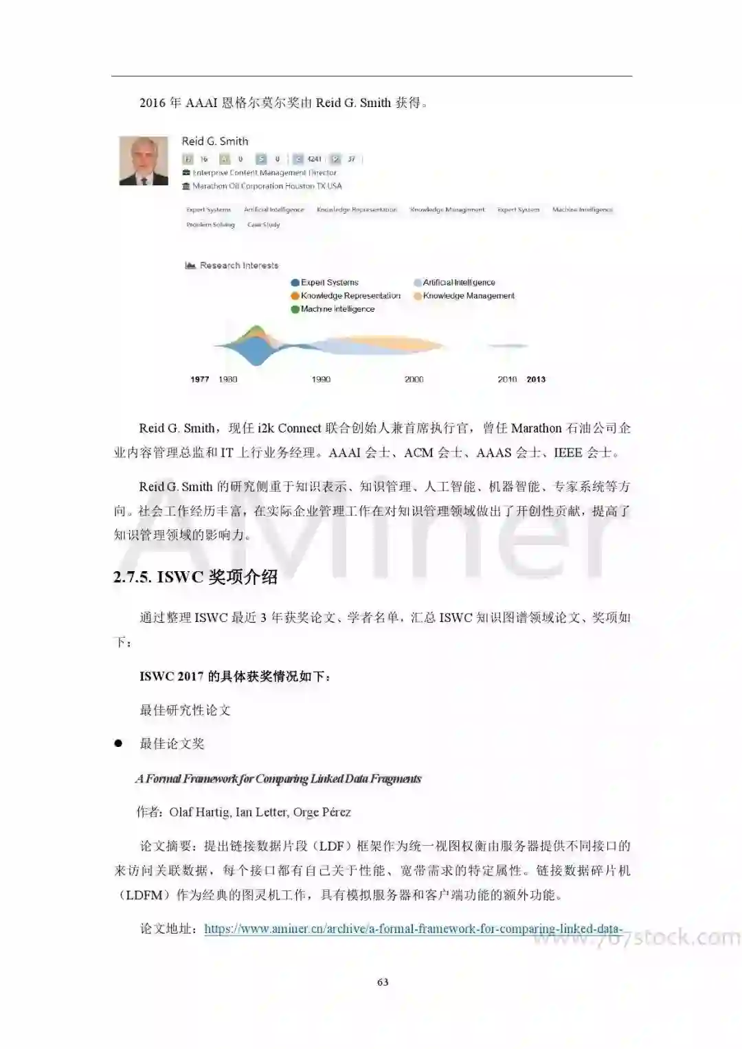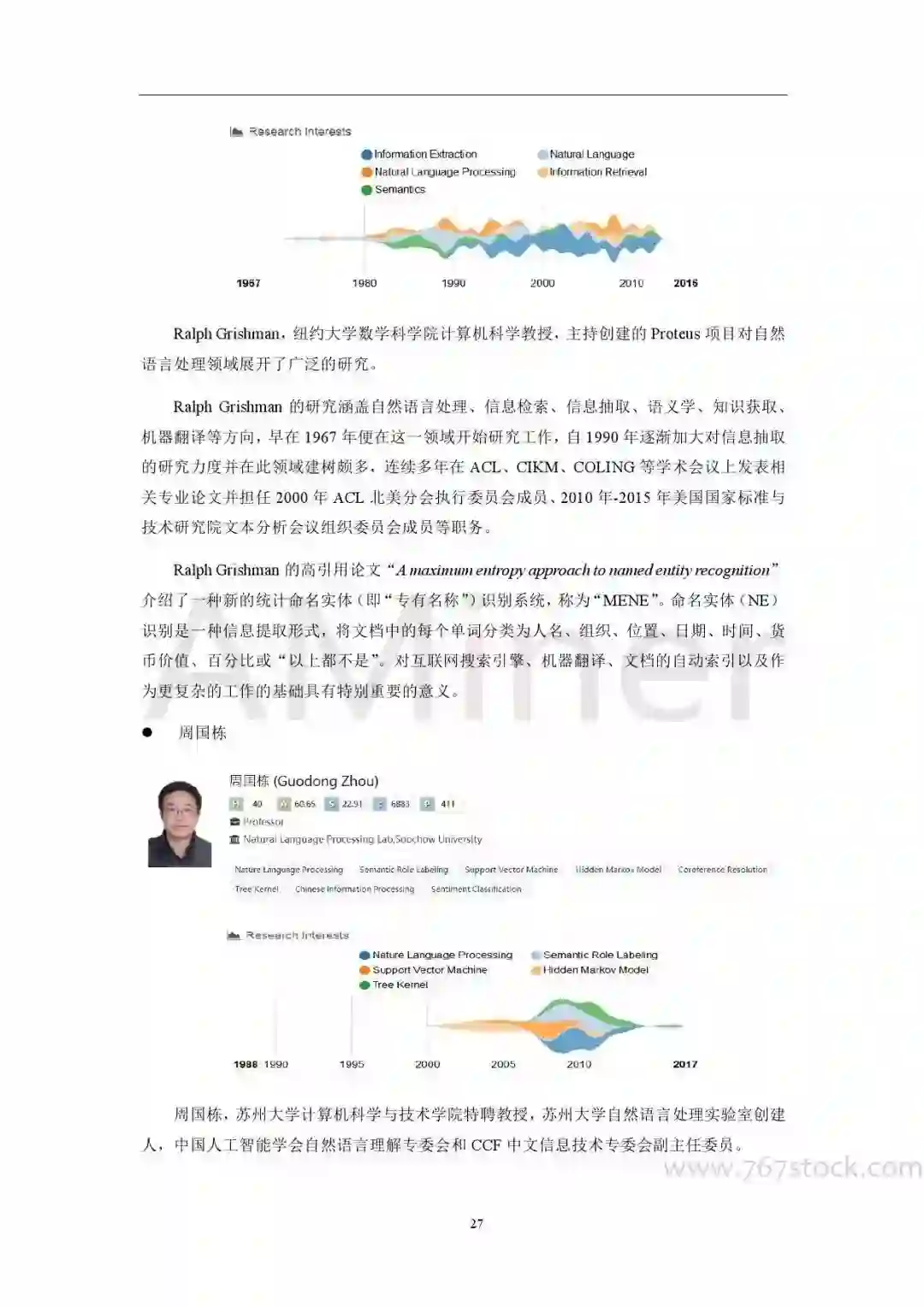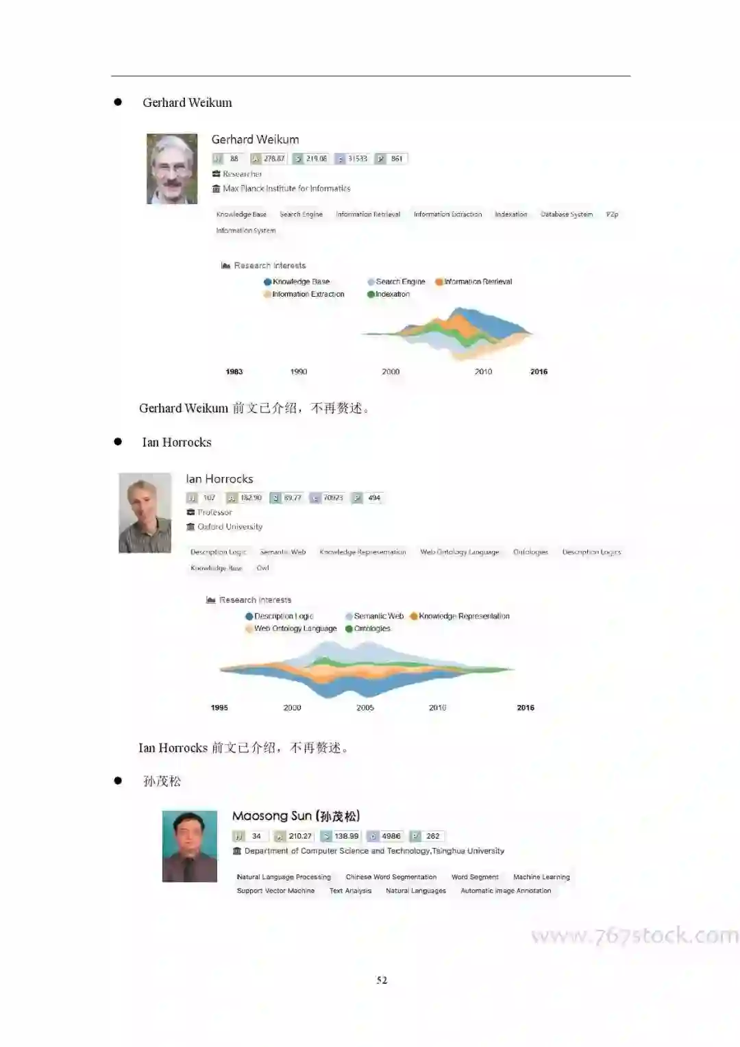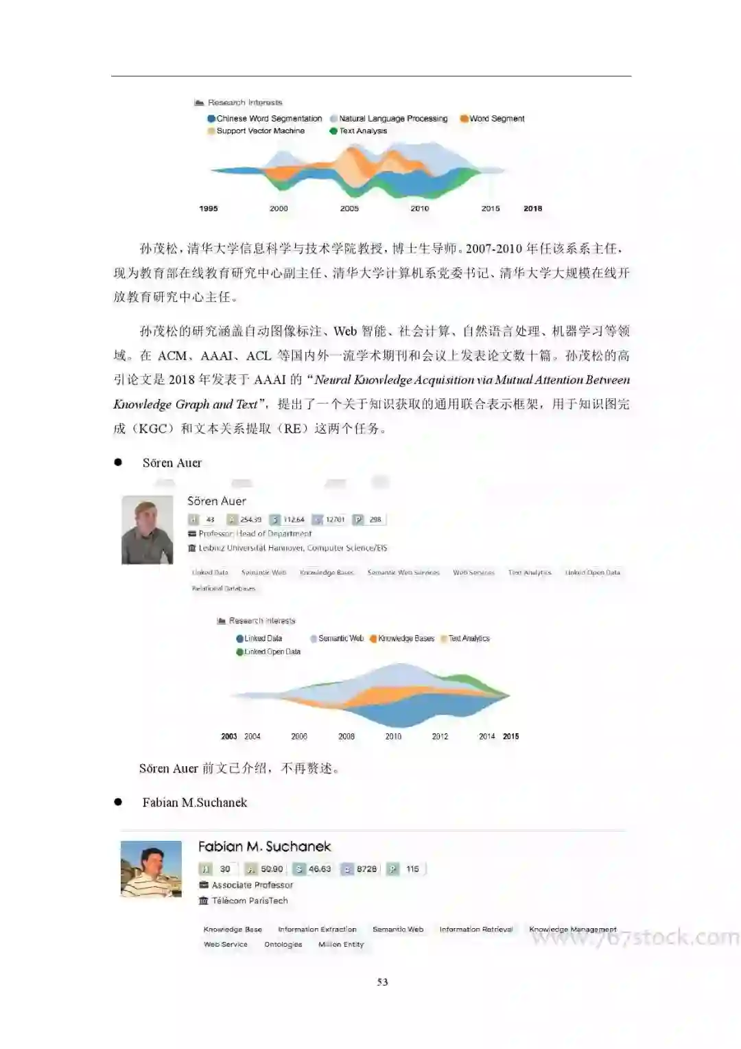 知识图谱领域专家介绍。依据AMiner数据平台信息,对知识图谱领域的5个细分领域进行梳理,重点介绍每一细分领域研宄学者的研宄方向与代表性文章,旨在为学术界、产业界提供知识图谱技术及学者的分析依据,同时面向政府机关、高校、企业等对知识图谱技术感兴趣的机构介绍该领域基本概念、研宄与应用方向。包括顶尖学者的全球分布、迁徙概况、学者机构分布、h-index分析,并依据AMiner评价体系,在知识图谱发展过程中近十年的高引学者进行详细介绍。