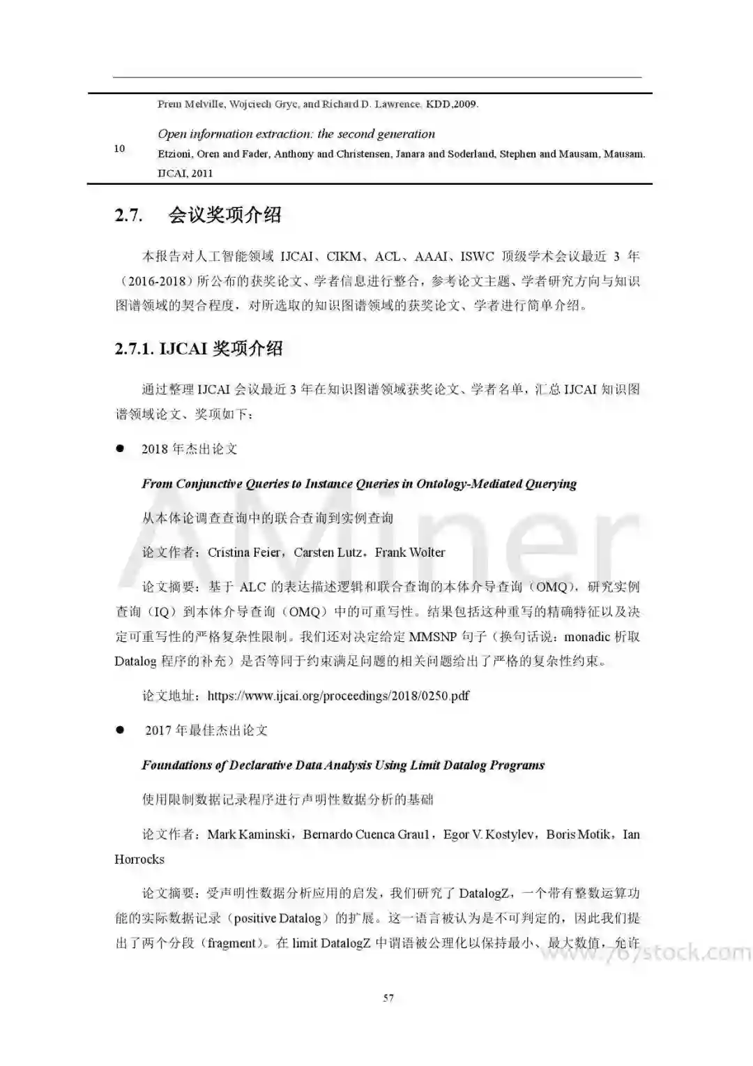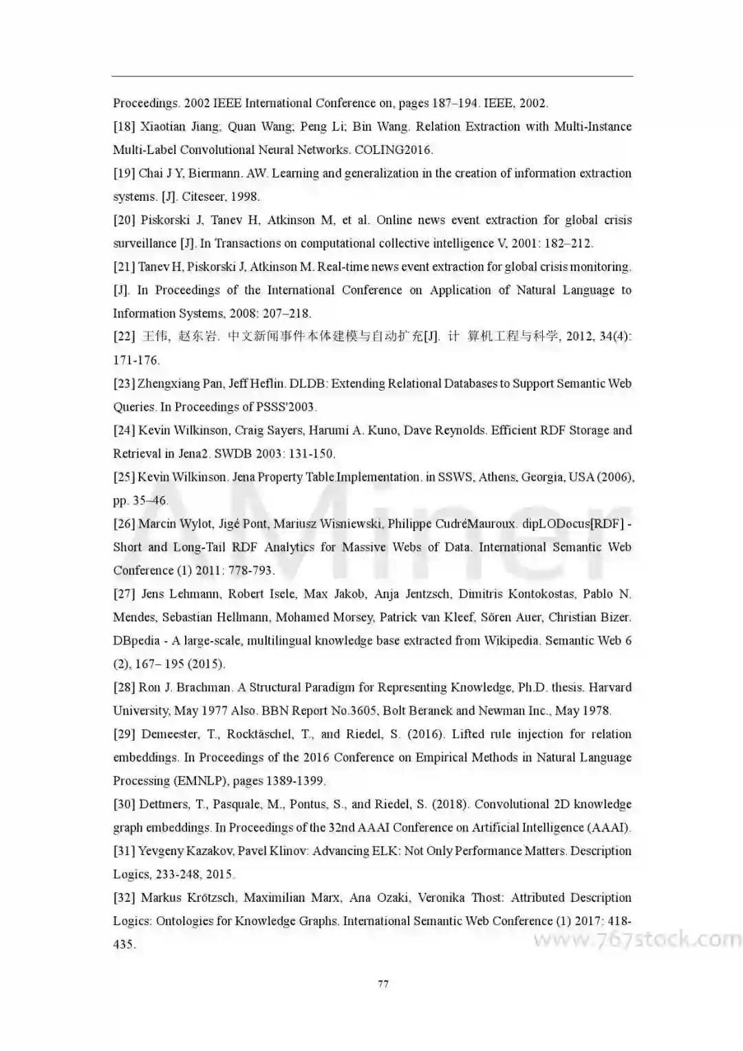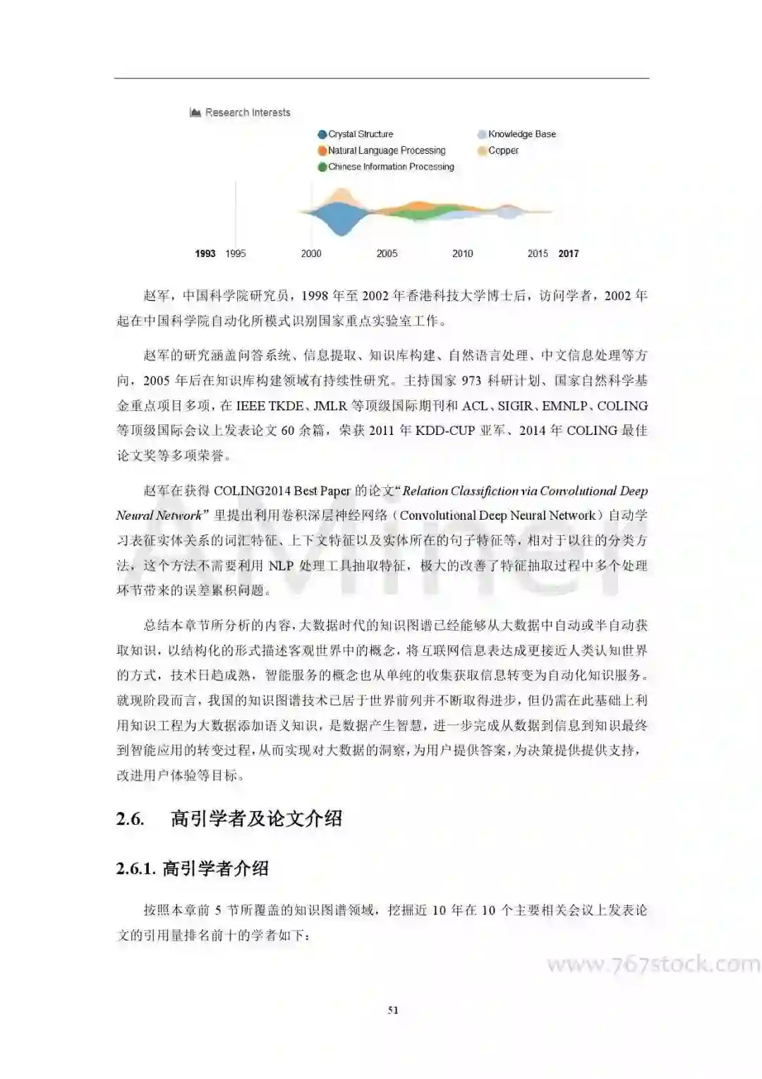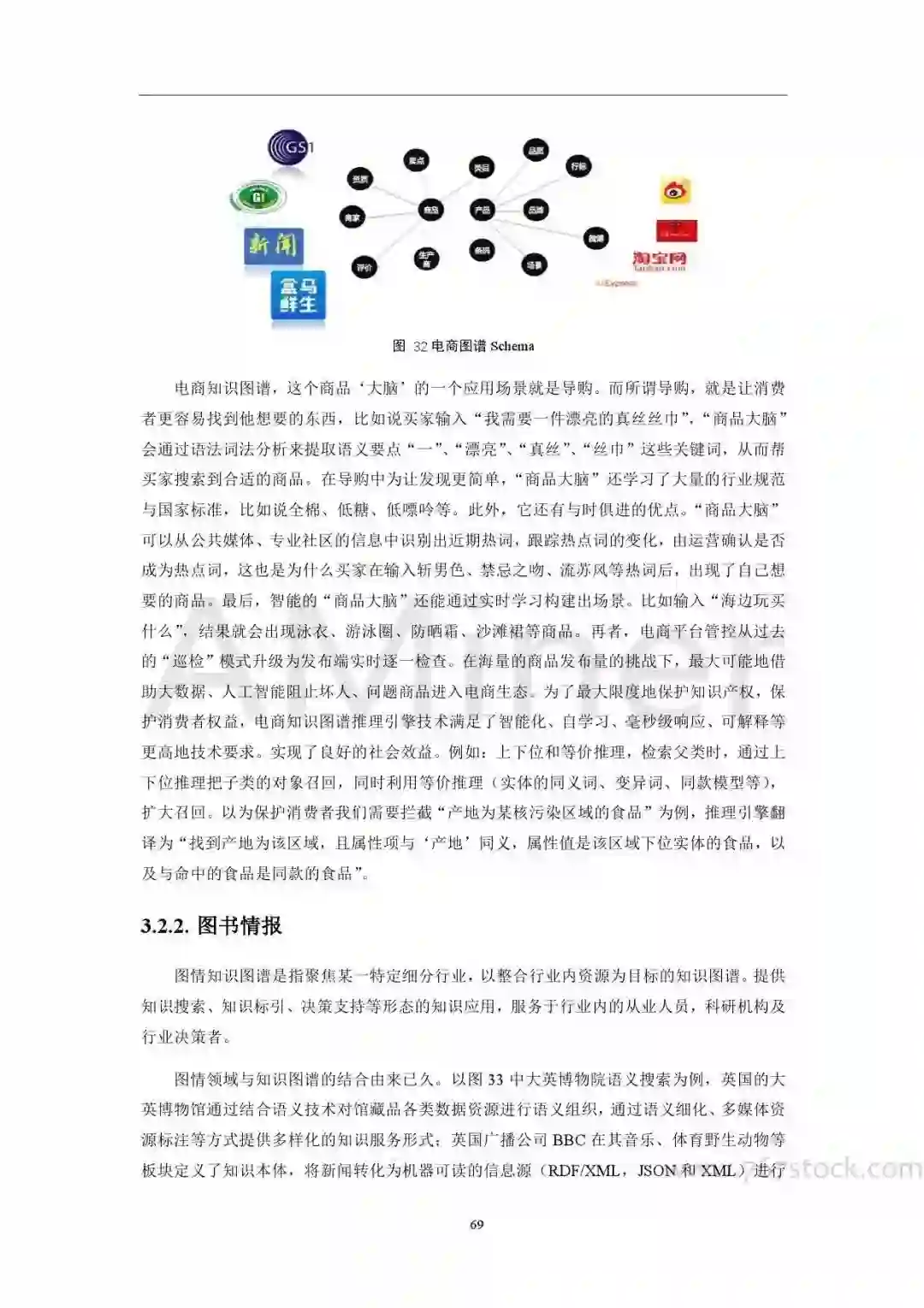 知识图谱应用。从通用知识图谱应用和领域知识图谱应用两个方面来介绍。以电子商务、图书情报、企业商业、船业投资、生物医疗五个领域,从图谱构建与知识应用两个方面介绍领域知识图谱的技术构建应用与研宄现状。