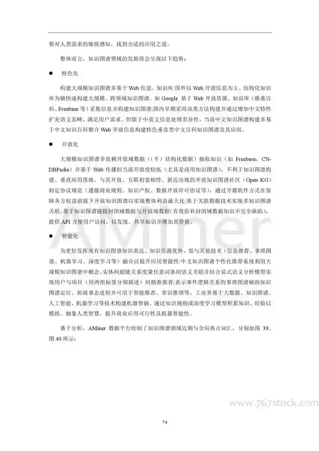 知识图谱趋势研宄。对知识图谱的发展趋势特点进行分析。并基于AMiner数据平台,对近期知识图谱领域研宄热点进行可视化分析,对未来知识图谱研宄方向进行预测。