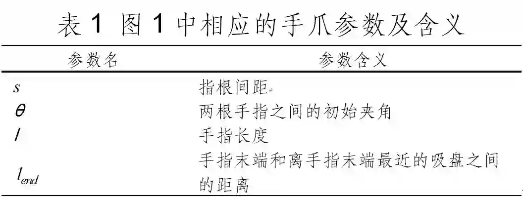 本文所有的分析和实验都是基于图1所示的手爪。图中的手爪参数的含义如表1所示。