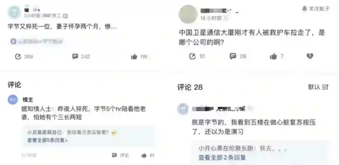 有相关人员表示,当时在字节的五楼看到有人在做心肺复苏,还以为是「演习」。还有知情人士称,字节5个hr陪着他的爱人,害怕有个三长两短。