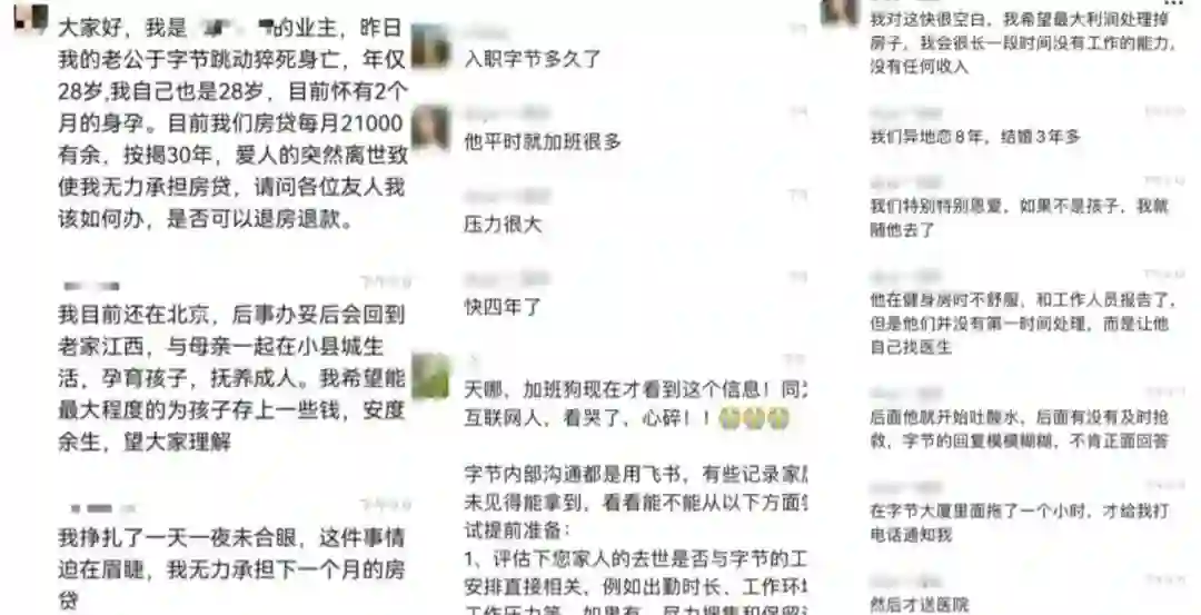 昨晚,网友最先爆料,字节28岁员工因工作猝死,留下了怀孕2个月的妻子,还有未还尽的房贷。