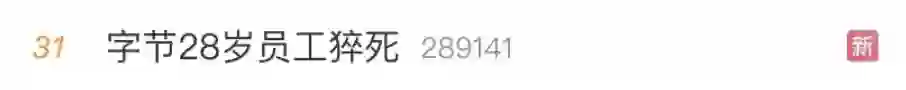 不出所料,#字节28岁员工猝死#登上微博热搜,引起许多网友的关注和思考。
