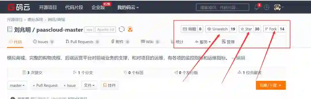 如果有时间最好能给点加个星或者follow一下,笔者在这里先谢过了。对不知道怎么加星的朋友,请用电脑登录github或者码云,这里两个截图