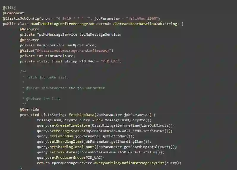 强制: 需要使用的使用加上述两个注解,方法参数需要加入 MqMessageData