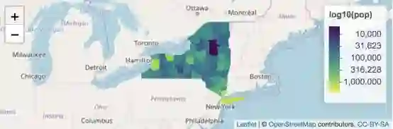 类似于highcharter,R中的Leaflet包也是基于非常流行的同名JavaScript程序库。