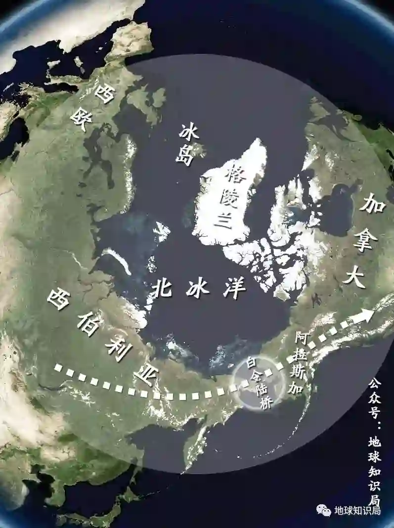 形成冰川的水大部分来自海洋,这就导致了海平面比今天低100多米,陆地的面积扩大,许多海峡变成了连接不同陆地的陆桥,其中就包括了白令陆桥。