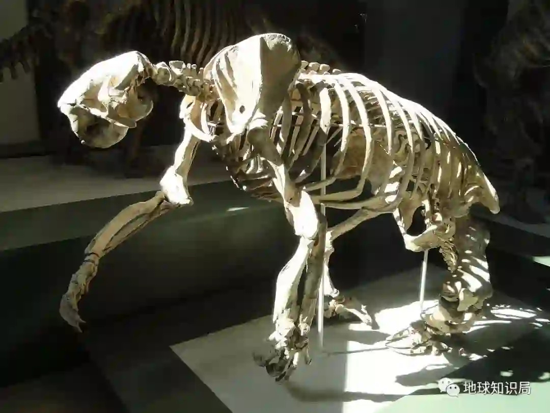 巨爪地懒的复原模型,它是一种强壮温和的动物