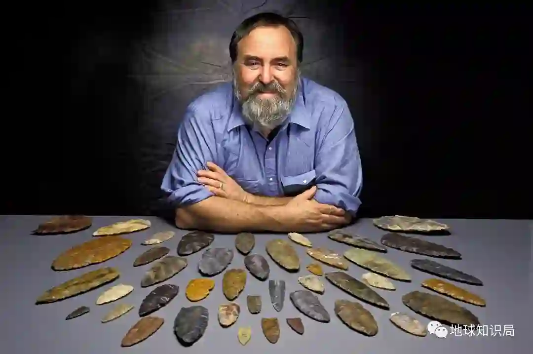 收藏家展示他收藏的克洛维斯矛尖