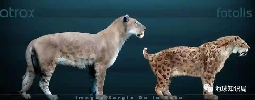 美洲拟狮与刃齿虎的体型对比