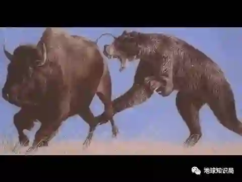 攻击美洲野牛的巨型短面熊