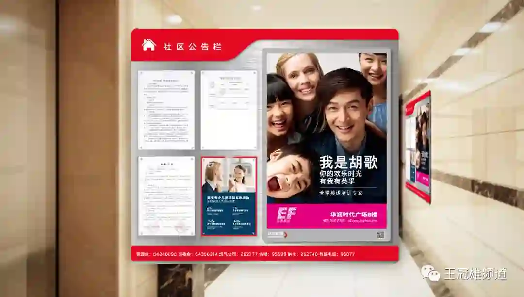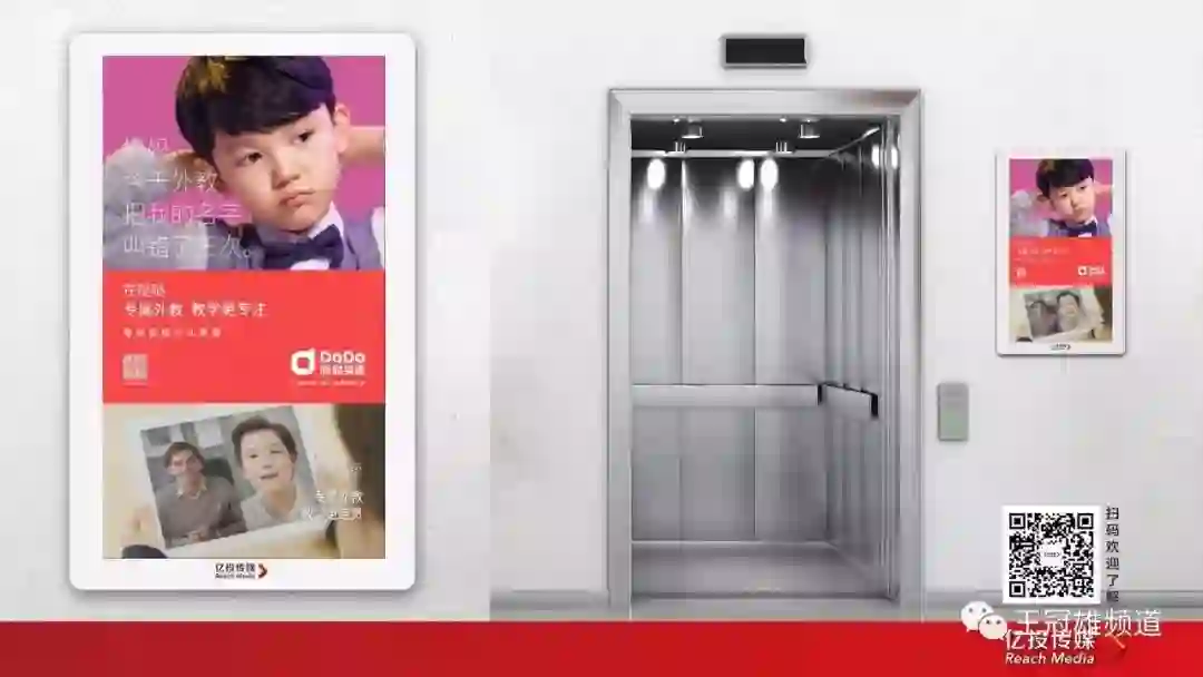 社区住宅楼宇广告和电梯口无疑成为了一个绝妙的选择。因为触达的核心群体是家庭人群,楼宇内的公告栏是用户会去主动获取信息的广告载体,顺便就会看到广告。而电梯口则可以直接覆盖一整栋中高端物业的人群,恰恰是主导家庭消费决策的核心。