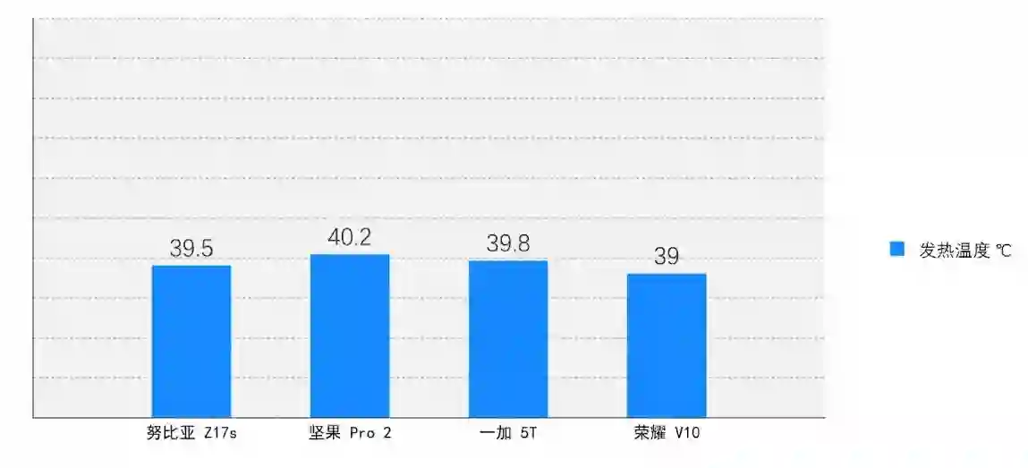 在发热最高的录像环节,我们使用温枪测量4台机器的温度,最高的坚果Pro 2只有40.2℃,其他机器更是没到40℃,发热控制非常理想。