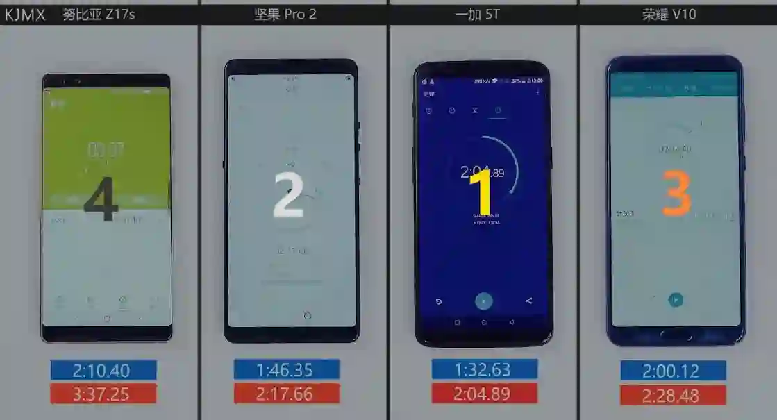 上周,我们对V10、Z17s、坚果Pro 2和一加5T的设计、屏幕和拍照体验做了测试,这期视频主要是样张、系统和功耗的对比——既然大家都是全面屏,颜值都说的过去,再来拼拼内涵吧。
