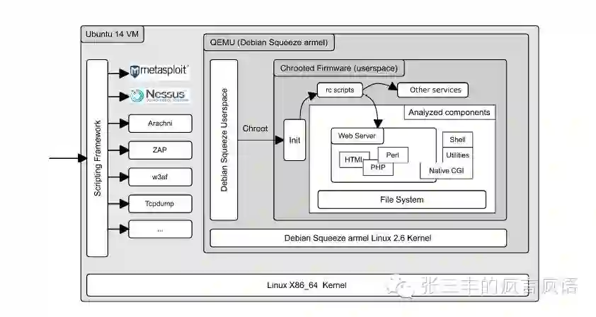 该议题展示有一种批量进行嵌入式Web安全测试的方法,使用QEMU搭建仿真云,只需要嵌入式设备的固件,即可启动固件中的WEB服务或接口。然后使用扫描工具自动对WEB服务或接口进行扫描。