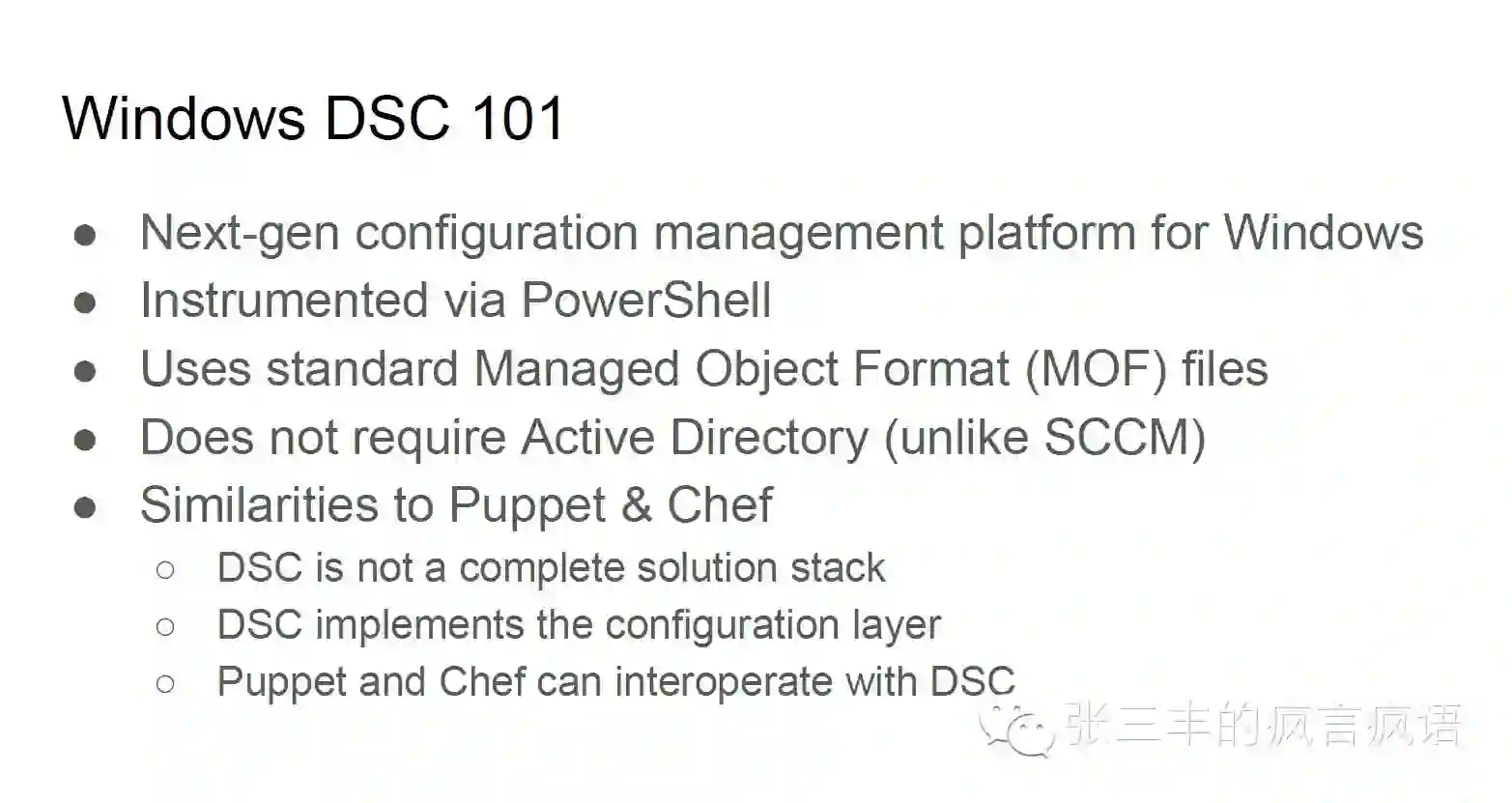 Windows DSC是什么鬼?DSC是DesiredState Configuration的缩写,是下一代的Windows配置管理平台。