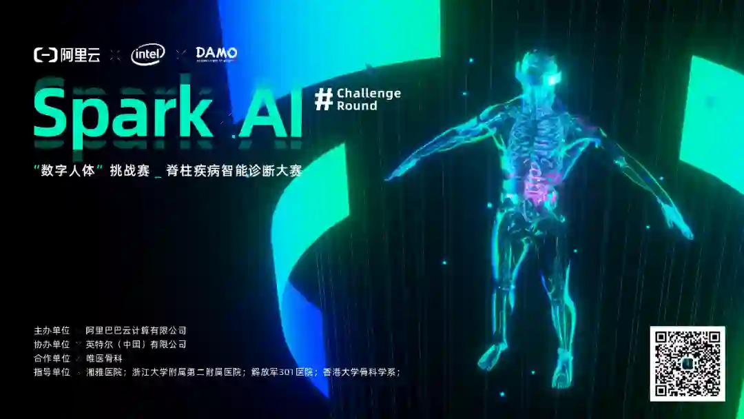 2020年 6月4日,首届 Apache Spark AI 智能诊断大赛在天池官网上线。Spark “数字人体” AI挑战赛——脊柱疾病智能诊断大赛,聚焦医疗领域应用,召集全球开发者利用人工智能技术探索高效准确的脊柱退化性疾病自动诊断。现已面向全社会开放,为所有大数据技术爱好者以及相关的科研企业提供挑战平台,个人参赛或高等院校、科研单位、互联网企业等人员均可报名参赛。