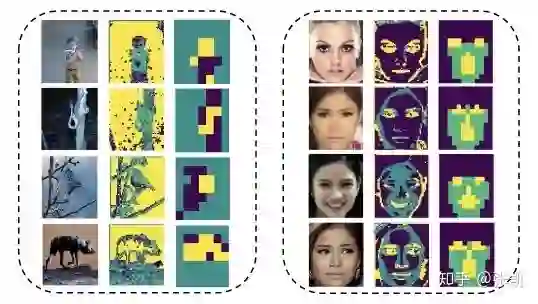 从可视化的角度来看,底层特征区域的分割是较为离散的,高层语义特征上,其分割更加连续,这是由于高层语义特征有较大的感受野所致。