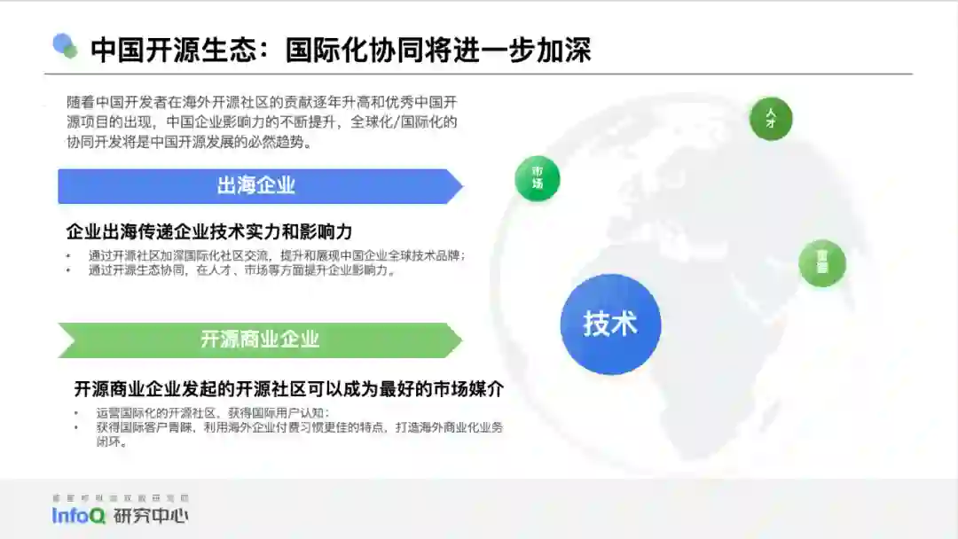 在本次参与调研的大部分开发者眼中,开源布道者和企业机构将是未来中国开源发展的重要砝码。开源将推动云原生、人工智能、操作系统等技术领域在中国的快速成长,开源的使用场景将从以互联网为和核心的行业分布向金融 + 工业的趋势推进,而国际化协同将进一步加深:来自出海和商业化的共同诉求,也将促进本土生态蓬勃发展。