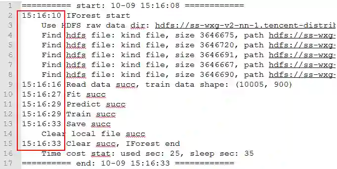 解决性能问题的第一步是要知道性能瓶颈在哪里,抽样发现主要是加载数据和训练模型耗时较多,预测异常和上报结果的耗时并没有随数据量的增加而快速上涨。