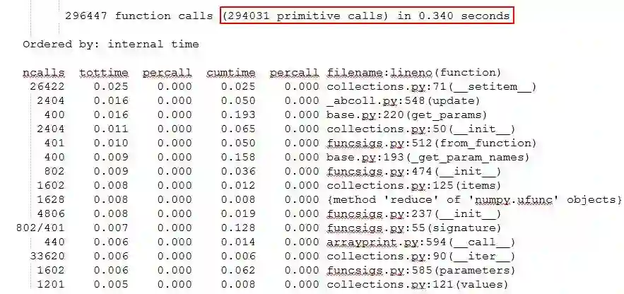 写完代码测试时,发现了个巨坑的问题:TenforFlow内部的序列化操作非常频繁、性能十分差。构造了110个测试样本,scikit-learn耗时只有0.340秒,29万次函数调用;而TensorFlow耗时达207.831秒,有2.48亿次函数调用。