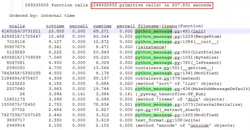 从TensorFlow的性能抽样数据可以看到,耗时排前排的函数都不是实现Isolation Forest算法的函数,其原因应该与TensorFlow基于Graph、Session的实现方式有关。感觉这里坑比较深,遂放弃填坑。
