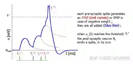 (2)基础知识准备:要解决题主的这两个问题,首先就要知道人脑是怎样基于脉冲的形式进行学习的:当一个神经元通过突触(准确的说是轴突)传输脉冲到下一个神经元,下一个神经元收到脉冲后就会引起膜电位的上升,不发射脉冲的时候,由于神经元存在离子泄露,导致膜电位下降;而当该神经元的膜电位达到一定阈值的时候,就会发射脉冲到下下个神经元了,当然你也得让神经元歇一会,在它发射脉冲后的一段时间内,你咋扒拉它,它也不射了,哦,不是,是不发射脉冲了(说白了就是贤者时间呗)。