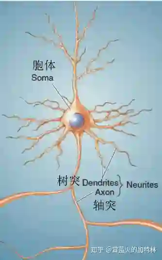 神经元的模型;树突用来收集信息,轴突用来发送信息,二者又合称神经突