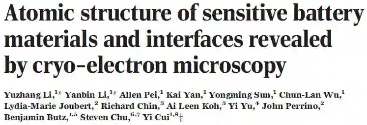 继冷冻电镜诺贝尔奖之后,今天出版的最新一期Science,发表斯坦福大学崔屹组和诺贝尔物理学奖得主朱棣文的最新研究论文,Atomic structure of sensitive battery materials and interfaces revealed by cryo–electron microscopy,开启冷冻电镜材料科学研究新篇章。请看知社深度介绍和独家专访,以及崔屹教授的感言和展望。