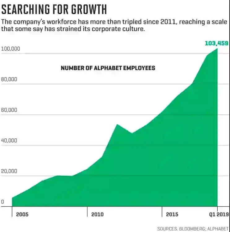 不同受访人对新旧谷歌的界限回答不一,但他们对这种变化的描述具有一致性:在旧谷歌,员工对公司的运营有发言权;在新谷歌,普通员工与高管之间的沟通和信任正在下降。一些人说,决策权现在集中在公司的最高层,他们越来越受传统业务指标驱动。